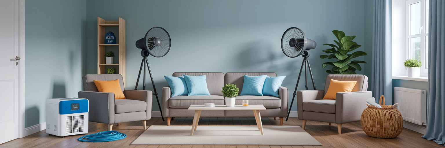 2. Strategic Dehumidification: Next, we strategically place industrial-grade air movers and desiccant dehumidifiers. This equipment creates an environment that actively pulls moisture out of structural materials like drywall and wood.